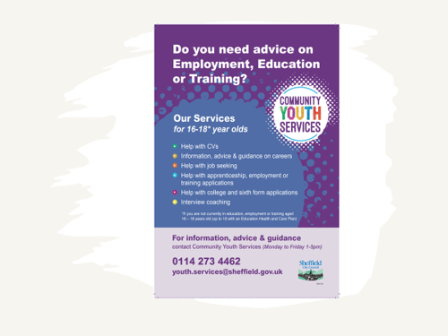 If you don't see what you are looking for or you believe something isn't quite right, please contact us on the number above or email us: youth.services@sheffield.gov.uk